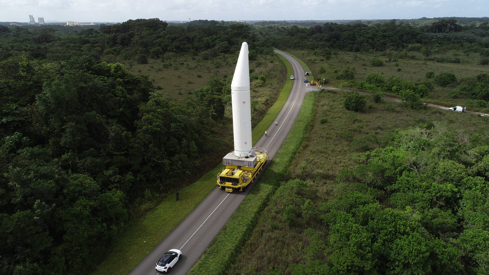 Jak už pravidelní čtenáři našeho webu vědí, stavba nové startovní rampy na kosmodromu Guiana Space Centre / Centre Spatial Guyanais alias častěji Kourou, se pomalu blíží ke svému konci. Čas do jejího dokončení se počítá již jen na pár měsíců a proto je již vhodné začít se zkouškami. Inženýři třeba testovali přesun urychlovacích motorů na tuhé pohonné látky. Právě tyto pomocné bloky zajistí, že se Ariane 6 bez problémů odlepí od startovní rampy – podle cílové dráhy a hmotnosti nákladu se tyto motory použijí buďto dva, nebo čtyři. V rámci zkoušek se samozřejmě nepracuje s plně natankovanými motory. K testům se používá speciální konstrukce, která rozměry odpovídá motorům P120C a pro zvýšení hmotnosti je naplněna vodou.