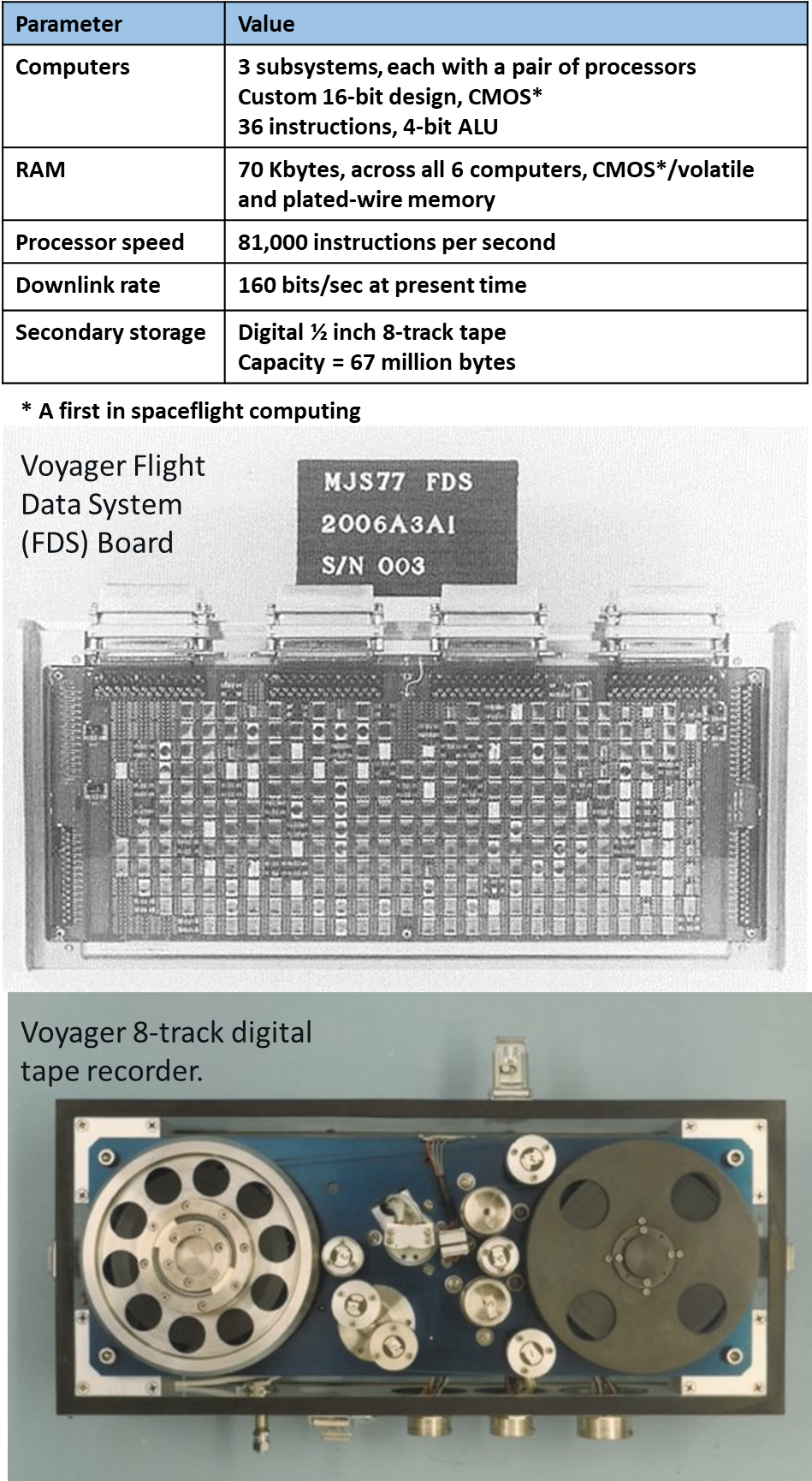 Dne 12. prosince 2023 oznámila NASA komunikační problémy se sondou Voyager-1. Voyager prováděl přijmuté příkazy ze Země, ale neodesílal zpět vědecká data. Příčinou byl jeden ze tří palubních počítačů Voyageru 1, systém letových dat (FDS – Flight Data System). Počítač FDS nekomunikoval správně s telemetrickou modulační jednotkou (TMU). V důsledku toho nebyla na Zemi posílána žádná vědecká ani technická data. Dne 3. března 2024 zaznamenal tým mise Voyager 1 aktivitu jedné části FDS. Tato aktivita se lišila od zbytku nečitelného datového toku počítače FDS. Díky pomoci specialistů z Deep Space Network se podařilo dekódovat nečitelný datový tok a zjistit, že obsahuje přečtení celé paměti FDS. V následné aktualizaci se již podařilo zjistit primární příčinu problému a pokračovalo se v řešení celého problému. Dne 19. května pak začal Voyager 1 opět posílat vědecká data. Toto je malé shrnutí o potížích, které potkaly sondu Voyager. Dnes se však nebude zabývat problémem Voyageru, ale podíváme se blíže na samotný výpočetní systém sondy.