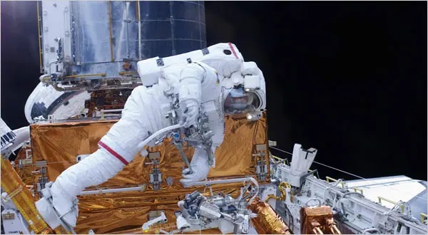 Servisní mise k Hubbleovu teleskopu byly velmi náročné.