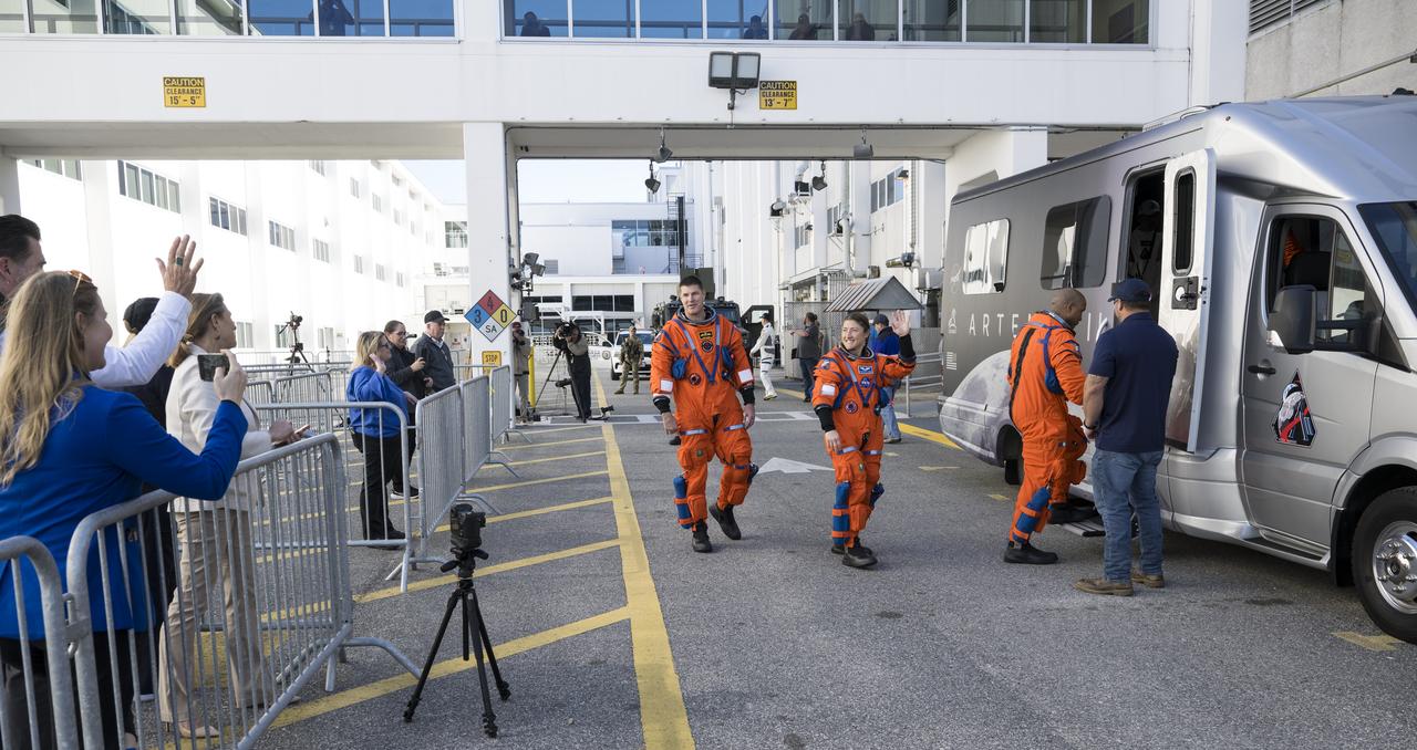 Nyní se Astrovan vydal do budovy VAB, kde se nachází letová sestava pro Artemis II. Uvnitř VAB astronauti nastoupili ve věži mobilní vypouštěcí plošiny do výtahu. V něm vyjeli až na úroveň, kde se nachází přístupové rameno k Orionu. Posádka svoji kosmickou loď už dříve pojmenovala jménem Integrity.