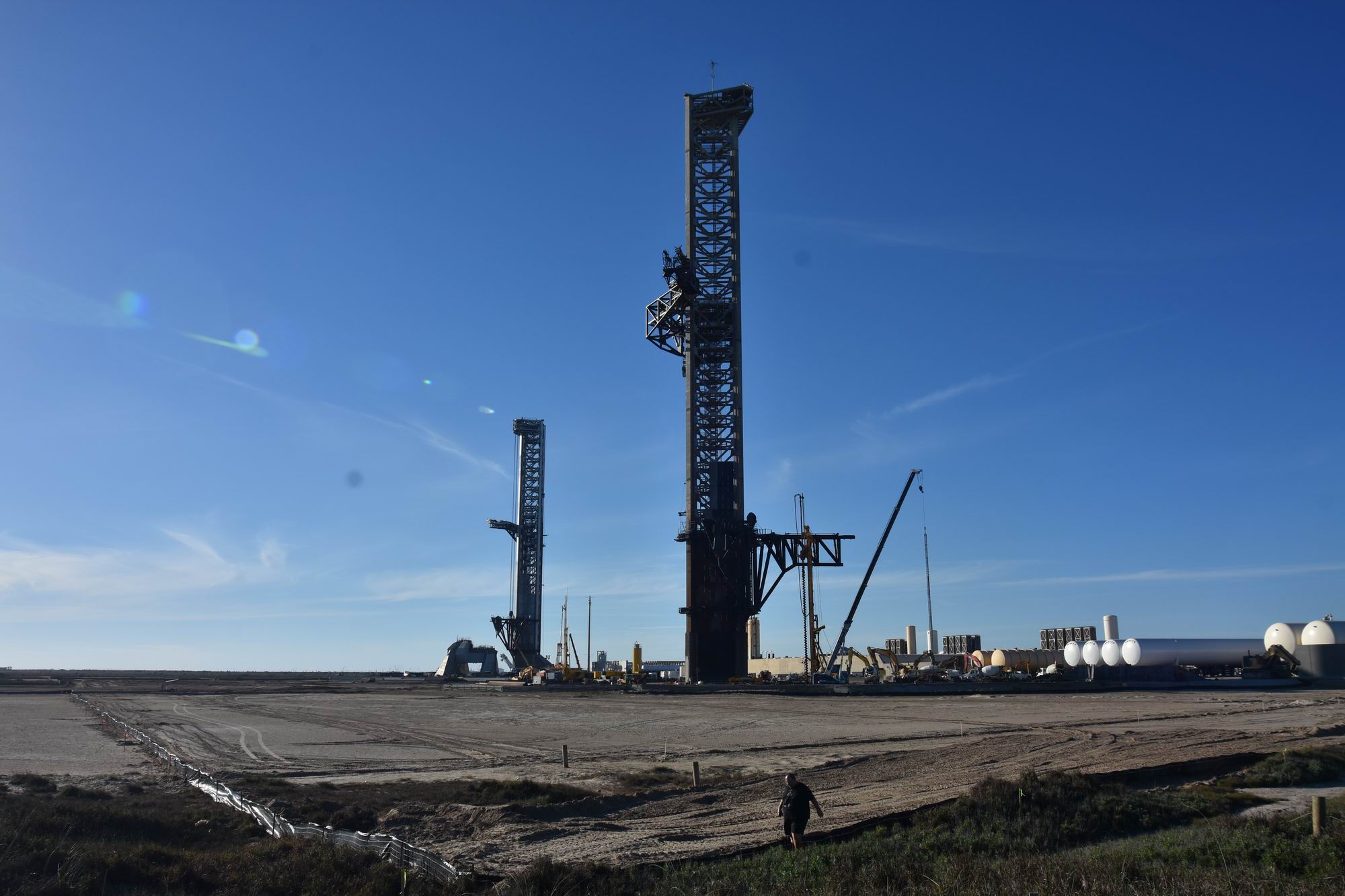 Opět jsme měli možnost setkat se s místními šílenci, kteří sledují veškeré aktivity přímo na místě. A tak jsme se dozvěděli něco o nejbližším startu Starshipu („budou moc rádi, když stihnou duben“), nové obří budově Gigabay („je to obrovsky komplikované; sice staví, ale pořád předělávají plány“) nebo o oteřenosti základny („je toho vidět čím dál méně ostraha je čím dál nepříjemnější“). Poslední můžeme potvrdit: zatímco ještě nedávno oddělovalo rampy (ev. rakety na nich) od veřejnosti jen několik cedulek, nyní už se chystá stavba „Security Wall“. Výpis opatření, která návštěvníkům komplikují život, by byl bohužel velmi dlouhý. Starbase už nikdy nebude to, co bývala…
