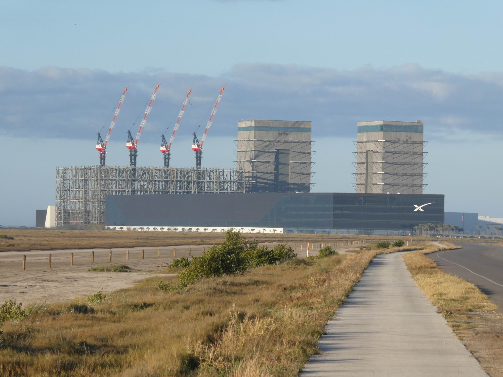 Cesta vedoucí z Brownsville na Starbase – dříve rekreační silnice na pláž – je díky výstavbě a provozu základny v totálně dezolátním stavu. Minule jsem myslel, že to nemůže být horší: teď víme, že může. Proto už se silnice opravuje a rozšiřuje na čtyřproudou. Ale… I na nově opravené části je vidět, že životnost bude opravdu krátká. Jinak v okolí základny (před deseti lety cca 30 stálých obyvatel) roste několik rezidenčních projektů.