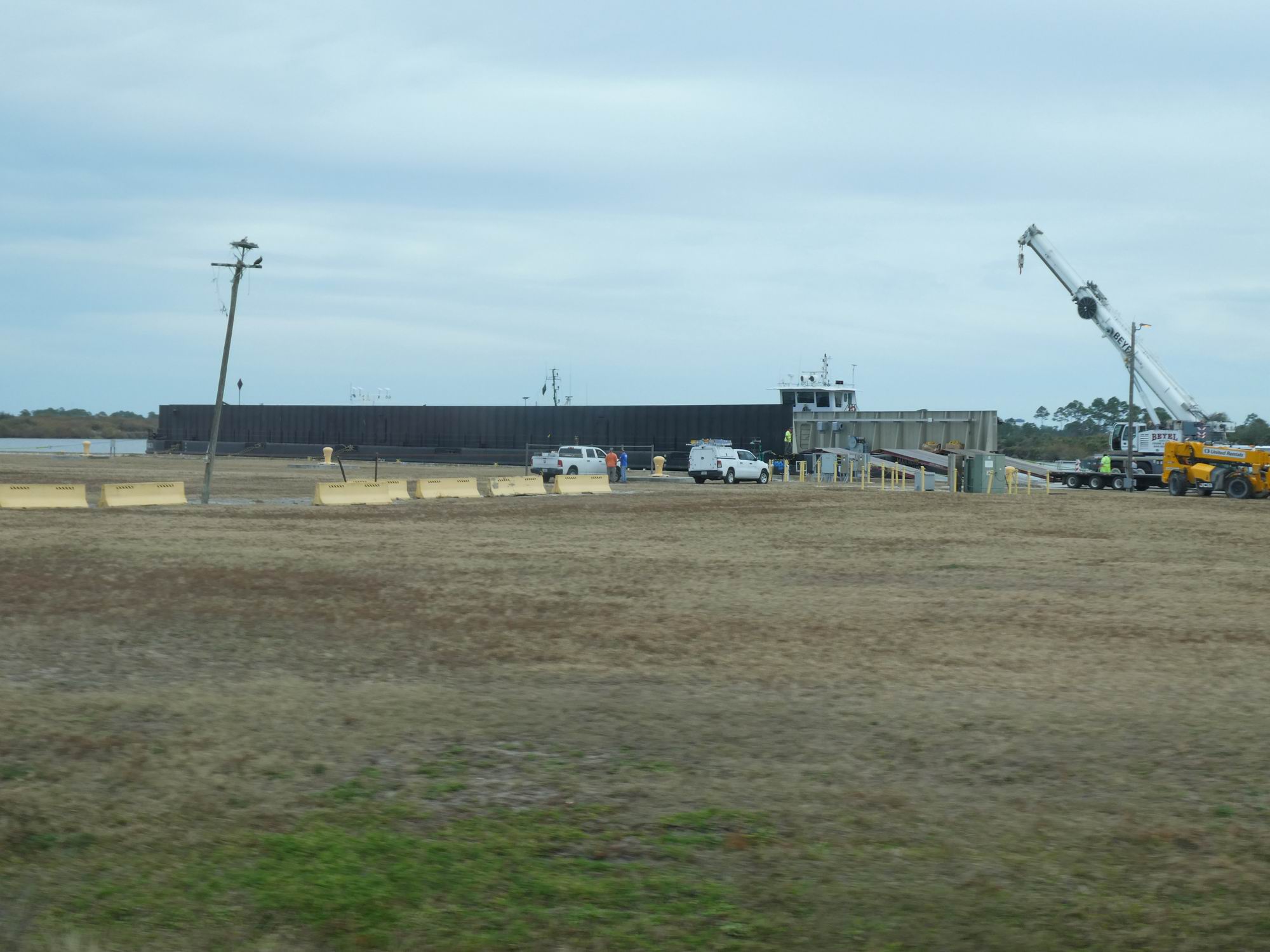 Předposlední zastávka je u montážní haly VAB, kde si můžeme pořídit fotografie s tímto obrem (výška 160 m) a prozkoumat tři rozměrné exponáty. Jednak záchranný transportér astronautů z programu raketoplánů M-113 (číslo 1), jednak inertní záchrannou věž LAS (Launch Abort Systém) lodi Orion a jednak přístupové rameno s bílou místností, které bylo používáno na rampě 39A v programu raketoplánů. A málem bychom zapomněli: před prostorem pro novináře na jezeře na konci vodního kanálu (Turning Basin) právě z lodi vykládali nové nádrže pro skladování pohonných látek pro Starshipy na 39A. Mimochodem, přivezla je nová loď ve flotile SpaceX typu Marmac 31 (spekuluje se, že by mohla dostat jméno You’ll Thank Me Later). Dnes vozí kusy ramp pro Starshipy z Texasu, v budoucnu (než na Floridě vznikne vlastní továrna) by měla převážet celé Starshipy.
