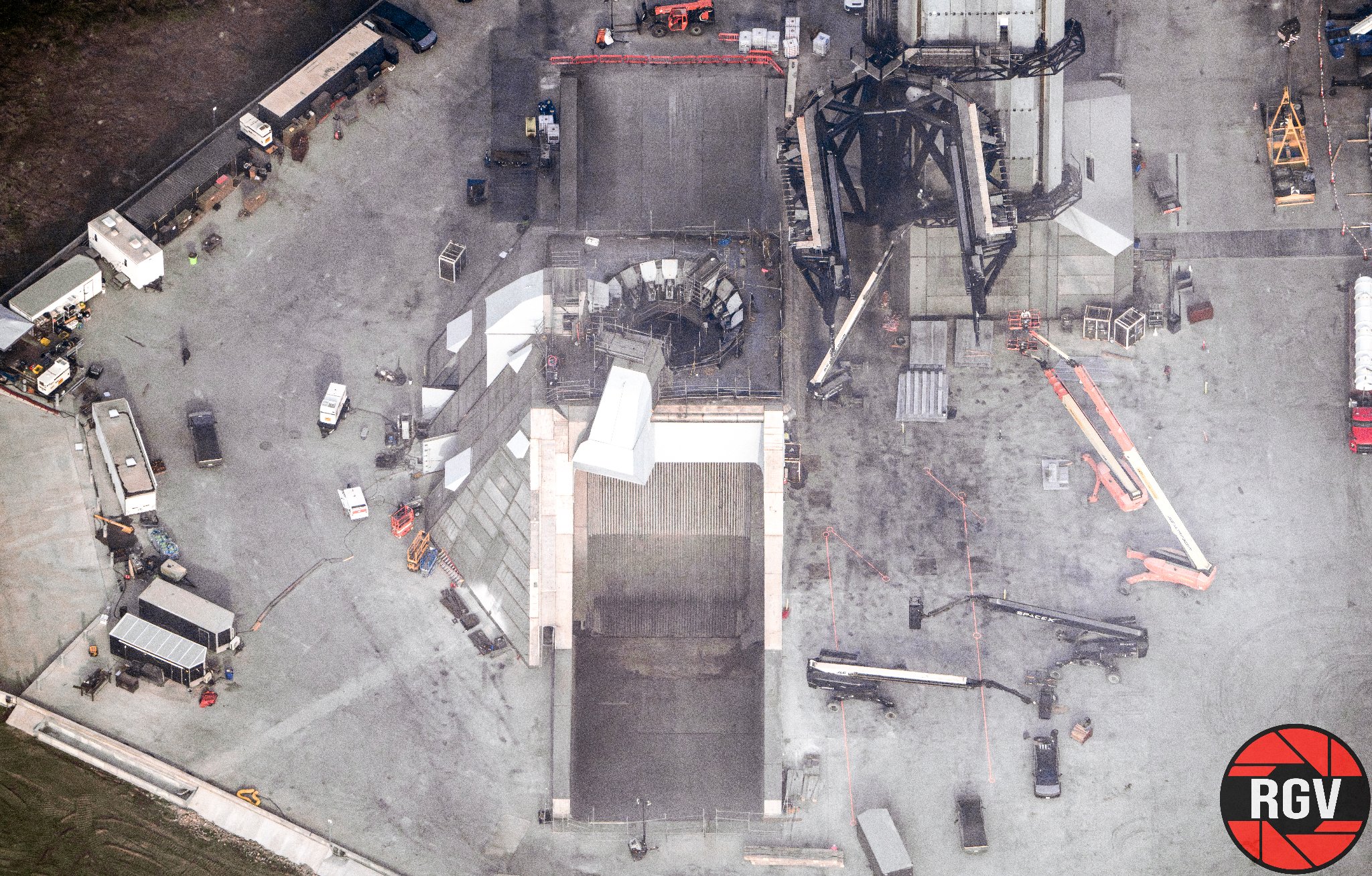 To hlavní se ovšem pod ním – deflektor spalin s příkopem pro jejich odvod pryč od rakety. Systém, který má v podstatě každá startovní rampa na světě, ale u Super Heavy Starship nám dlouhé roky chyběl. I když se SpaceX podařilo problémy poškozování původní rampy při každém startu poměrně dobře eliminovat pomocí zaplavovacího systému, bylo již od začátku jasné, že se jedná jen o dočasné řešení, protože by bylo nutné kovovou desku tohoto systému nacházející se pod samotným stolem po určitém množství startů kvůli opotřebení vyměnit. Deflektor a příkop pro odvod spalin jsou velmi podobné tomu, co SpaceX využívá v testovací oblasti Massey’s při statických zážezích lodí Starship, kde byla pravděpodobně ověřena funkčnost tohoto designu.