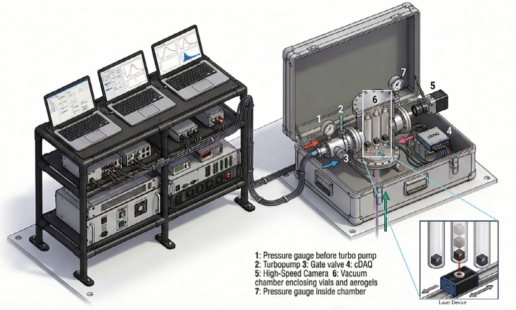 Ve vakuové komoře byl stálý laserový paprsek zaměřený na tři malé kostky z grafenového aerogelu. Rychloběžná kamera pak přes skleněné trubice zaznamenávala celý průběh experimentu. Grafenové aerogely jsou ultralehké, vysoce porézní materiály, které kombinují mimořádnou elektrickou vodivost grafenu se strukturálními výhodami architektury aerogelů. Silné mechanické vlastnosti si udržují navzdory své velmi nízké hustotě. Právě spojení nízké hmotnosti, vysoké poréznosti a dobré vodivosti z nich dělá mimořádně zajímavý a technologicky slibný materiál pro další laboratorní i aplikovaný výzkum. „Jejich reakce byla rychlá a zběsilá. Než jste vůbec začali mrkat, už grafenové aerogely zažily velké zrychlení. Všechno to proběhlo během 30 milisekund,“ vysvětluje Marco Braibanti, vědec agentury ESA zapojený do experimentu Light-driven propulsion of graphene aerogels in microgravity (světlem vyvolaný pohon grafenových aerogelů v mikrogravitaci).