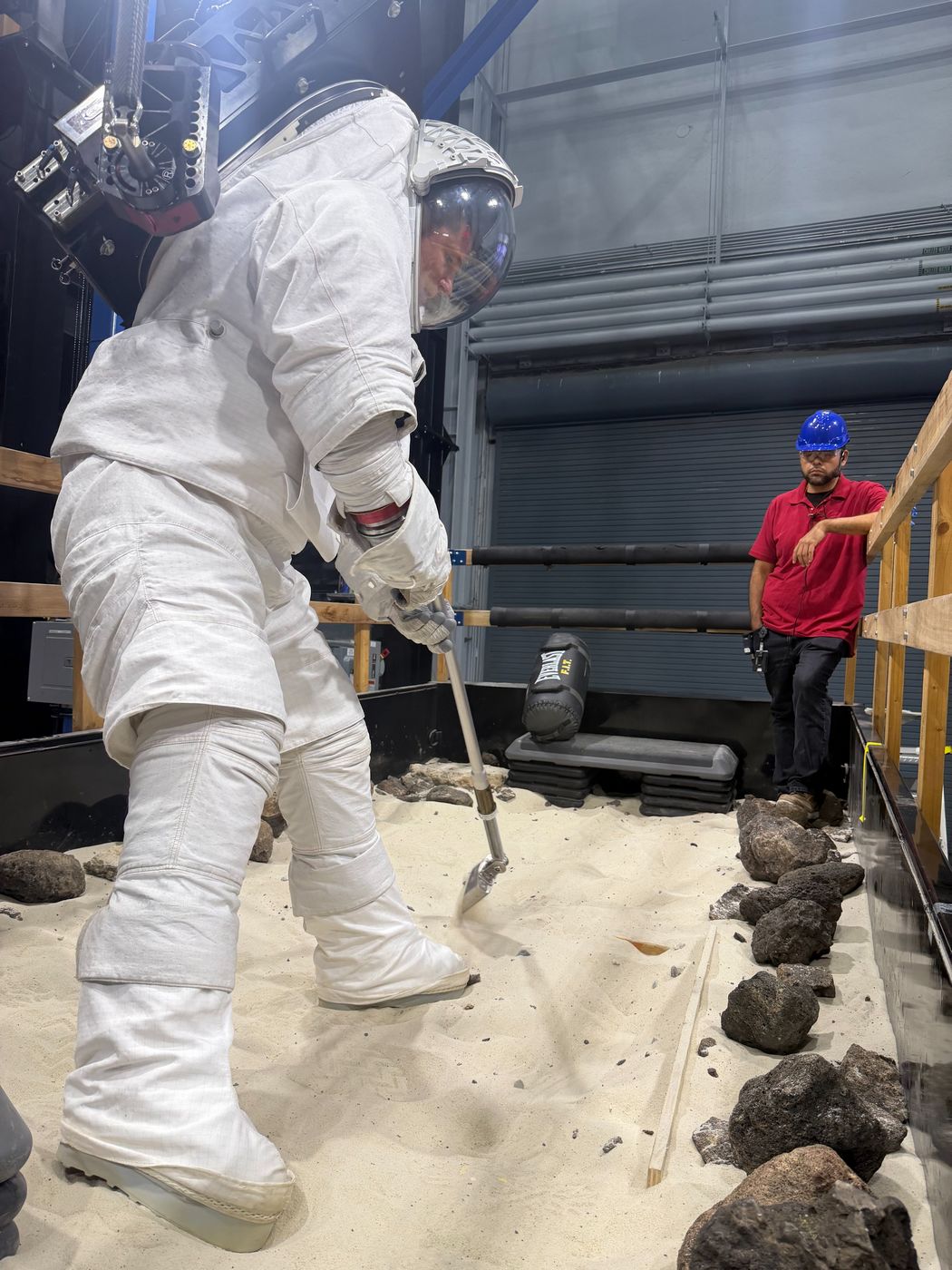 Čtyřčlenná posádka mise Artemis II si ani neodpočinula a už trénovala ve skafandrech na budoucí lunární výstupy na povrch. Důvodem bylo otestovat, jak budou astronauti během kosmického letu a tedy neodpočatí, schopni provádět plánované práce. Zkoušely se práce s odběrnými zařízeními, nástroji a podobně. Na snímku je kanadský astronaut Jeremy Hansen.